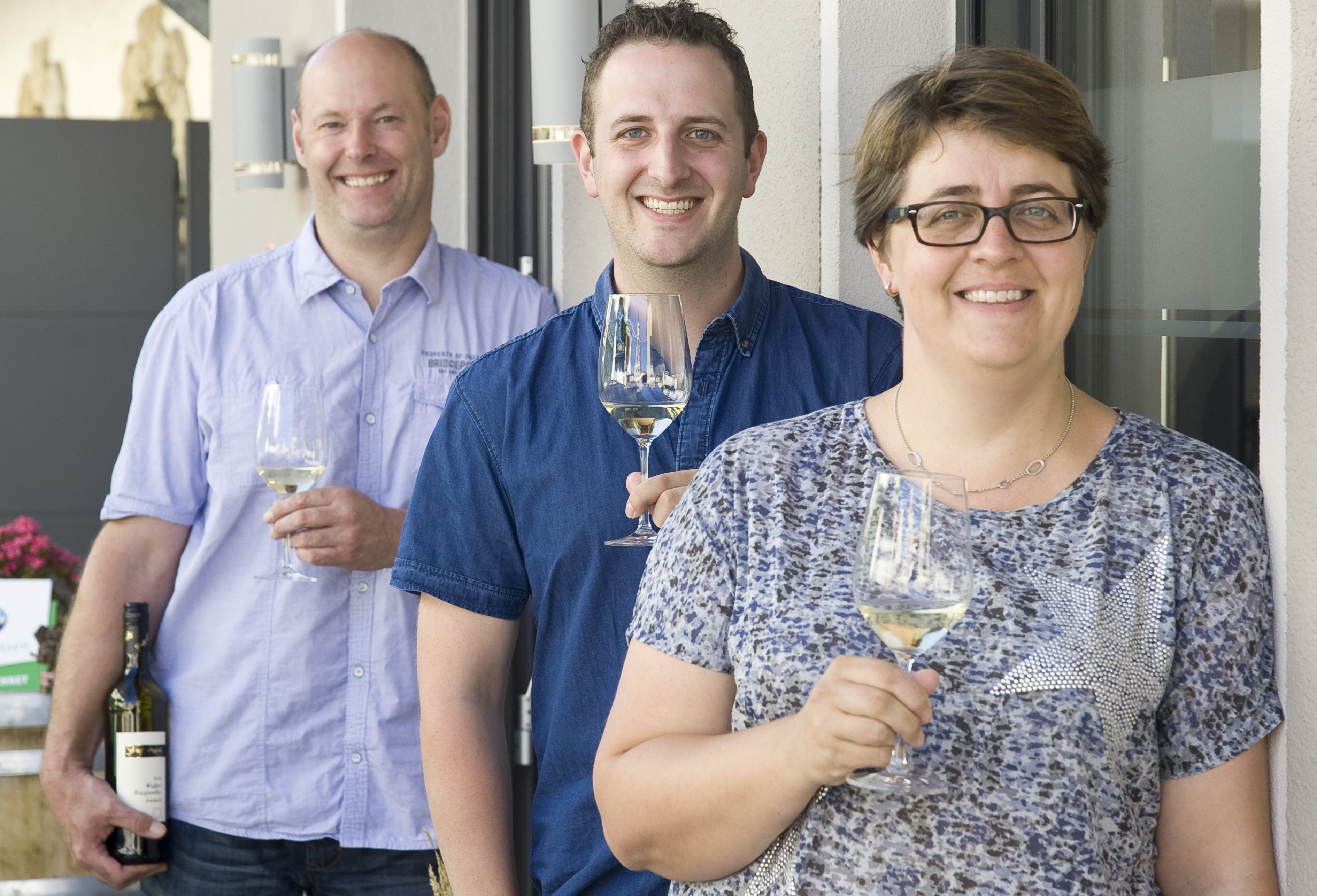 Die Dörrschucks sind tief verwurzelt in ihrer Heimatgemeinde. Auf dem Weingut leben zurzeit drei Generationen. Britta und Meik leiten das Weingut. Sie werden von Brittas Bruder Stefan unterstützt.