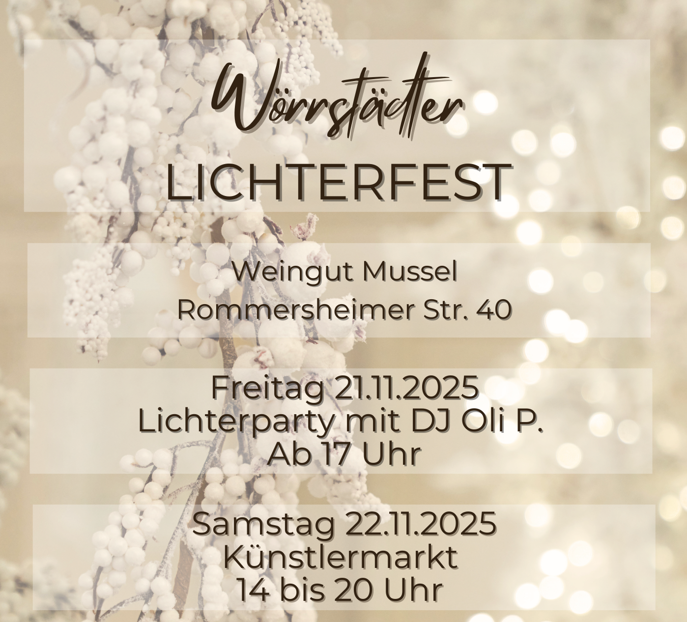 Am 21. und 22. November 2025 lädt die Wörrstädter Interessengemeinschaft e.V. im Weingut Mussel in Wörrstadt zum stimmungsvollen Wörrstädter Lichterfest ein.